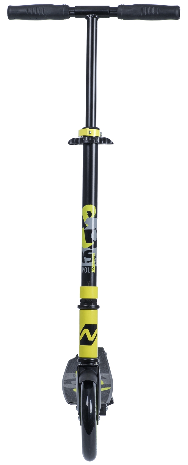 Novatrack Polis 180 2019 - алюминиевый самокат, оборудованный удобным механизмом складывания с помощью одной кнопки и износостойкими полиуретановыми колесами 200 мм. Широкая асимметричная платформа с концепцией одностороннего крепления заднего колеса и противоскользящим покрытием позволит удобно и безопасно разместиться как ребенку, так и взрослому весом до 100 кг. Регулируемый по высоте эргономичный Т-образный руль обеспечит комфортный хват.