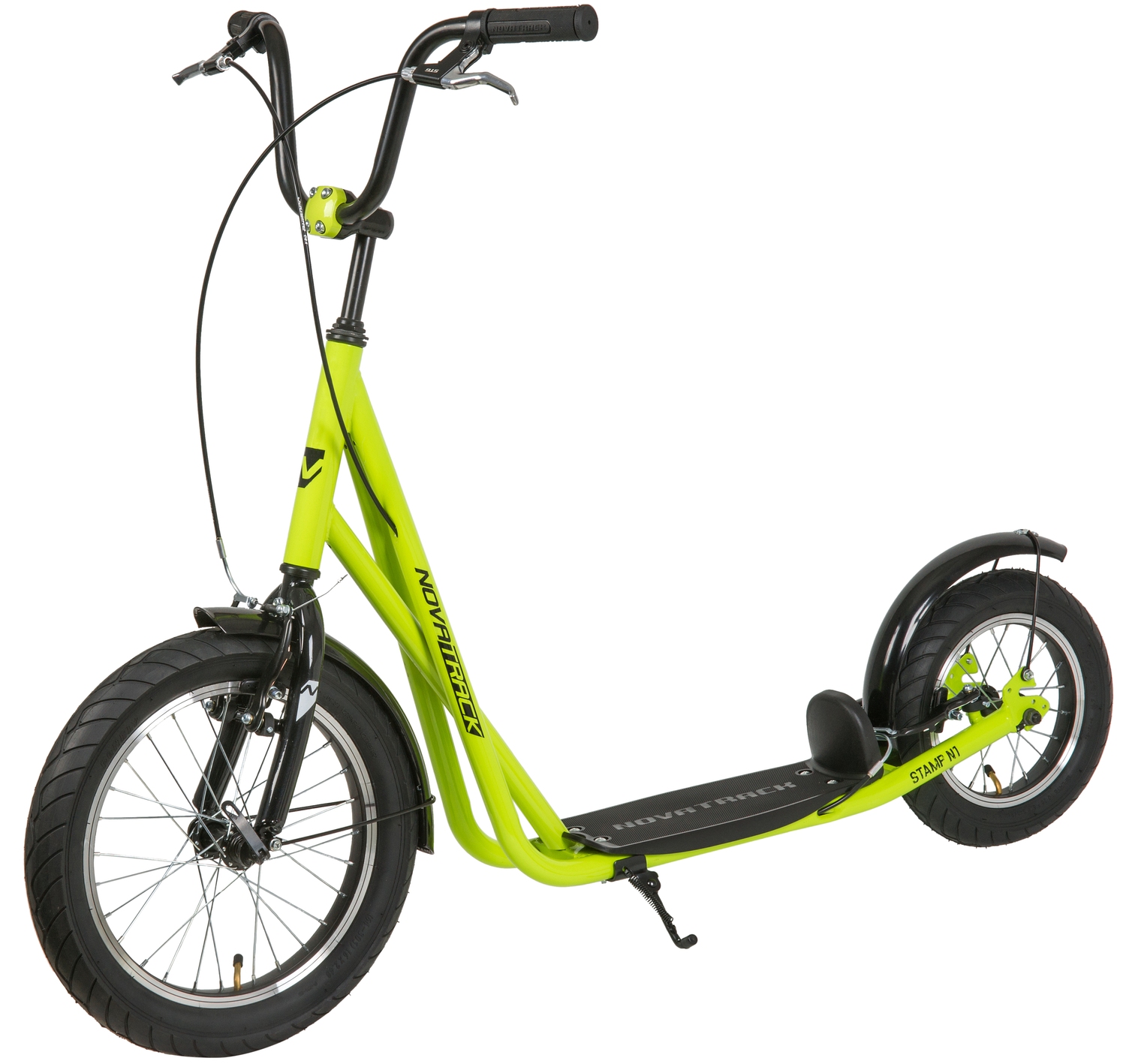 Самокат Novatrack STAMP N1 PRO порадует всех любителей активного образа жизни. Широкие надувные колеса диаметром 16 и 12 дюймов позволят кататься не только по асфальтовым дорожкам, но и с легкостью преодолевать парковые тропинки. Надежные передний и задний ручной тормоз обеспечивают безопасное торможение даже с очень крутой горки. Надувные колеса имеют ряд ощутимых преимуществ. Они бесшумны, с мягкими колёсами поездка будет мягче и комфортнее. Хорошо защищают от неровностей благодаря амортизирующим свойствам. Такие колёса комфортны при езде по неровным дорогам. В дождливую погоду надувные колеса увереннее держатся в поворотах. Они отлично тормозят и не скользят на разных поверхностях. Благодаря отличному сцеплению, помогают развивать более высокую скорость.