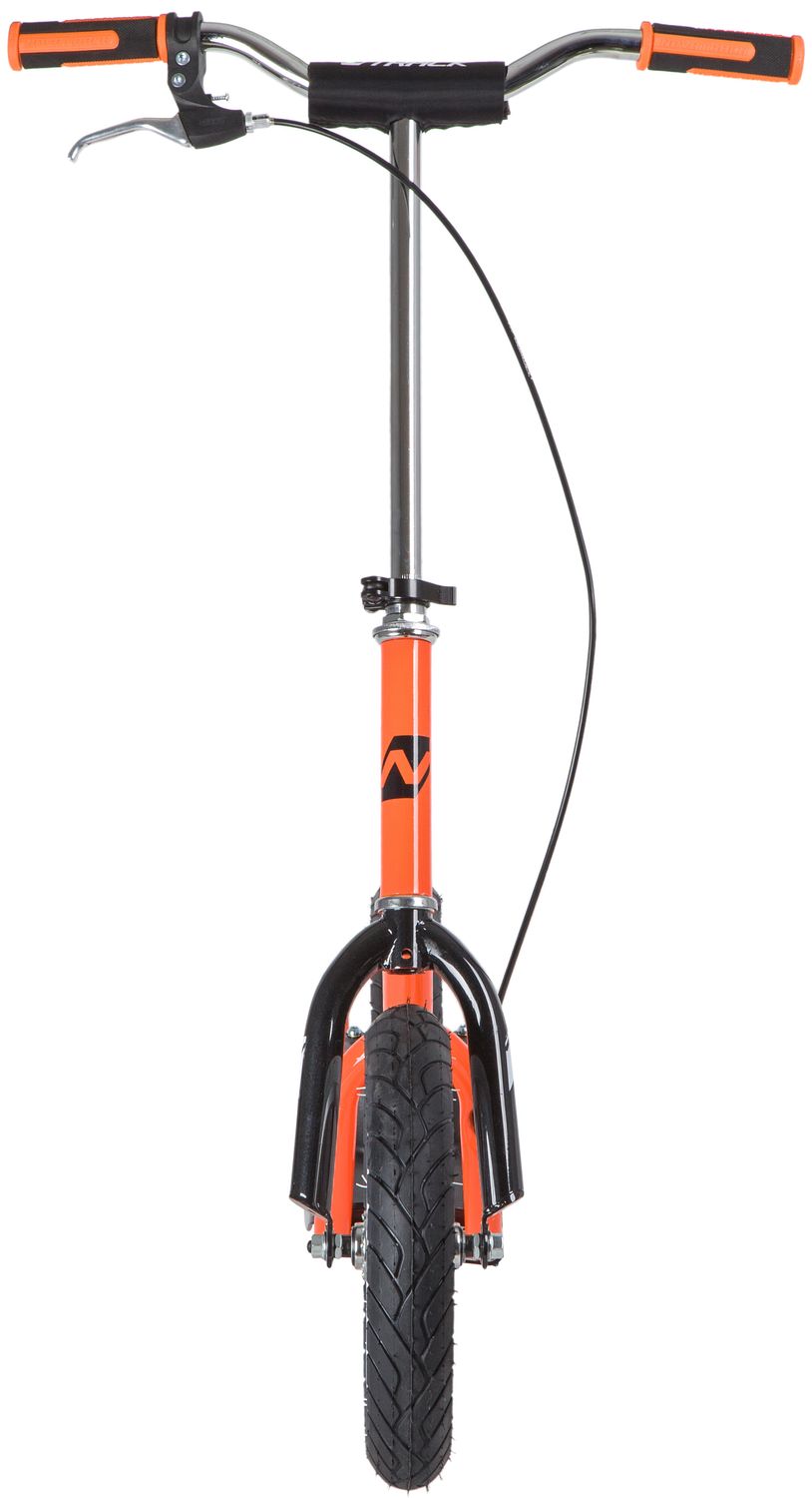 Самокат Novatrack STAMP N4 порадует всех любителей активного образа жизни. Широкие надувные колеса диаметром 12 дюймов позволят кататься не только по асфальтовым дорожкам, но и с легкостью преодолевать парковые тропинки. Надежные передний и задний ручной тормоз обеспечивают безопасное торможение даже с очень крутой горки. Надувные колеса имеют ряд ощутимых преимуществ. Они бесшумны, с мягкими колёсами поездка будет мягче и комфортнее. Хорошо защищают от неровностей благодаря амортизирующим свойствам. Такие колёса комфортны при езде по неровным дорогам. В дождливую погоду надувные колеса увереннее держатся в поворотах. Они отлично тормозят и не скользят на разных поверхностях. Благодаря отличному сцеплению, помогают развивать более высокую скорость.
