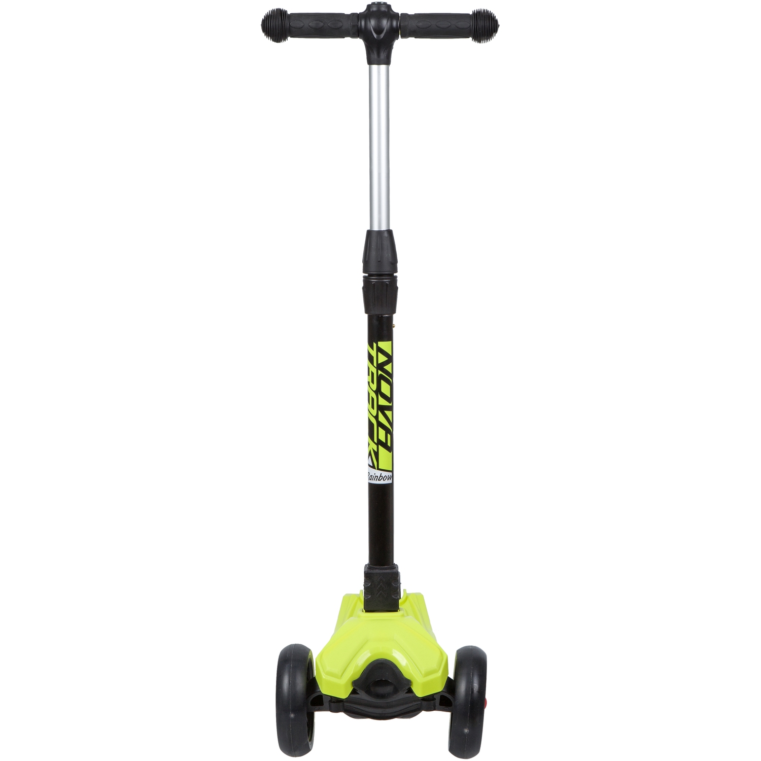 Novatrack RainBow - детский трёхколесный самокат-кикборд, предназначенный для детей от 3 лет. Cветящиеся при движении колеса обязательно обрадуют вашего ребенка и сделают его более заметным в темное время суток. Имеется регулировка руля по высоте в трёх положениях. Модель оснащена механизмом с надежным замком, благодаря чему компактно складывается для транспортировки или хранения. Самокат выдерживает вес до 80 кг.