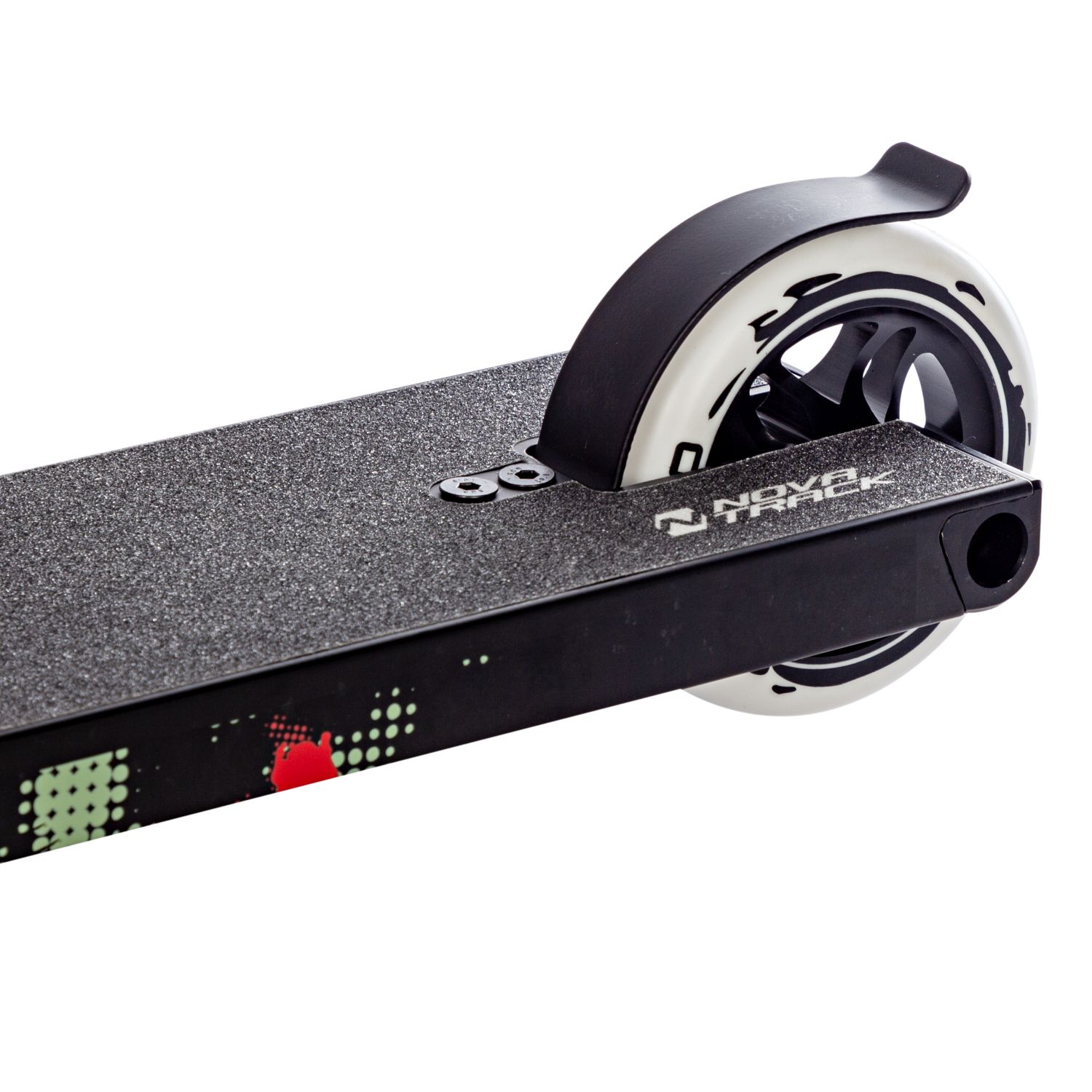 - Качественные колёса: С размером переднего и заднего колеса в 110 мм и жесткостью 88A, этот самокат демонстрирует отличное сцепление с поверхностью и хорошую манёвренность. Подшипники ABEC-9 способствуют плавному и быстрому вращению, что особенно важно для трюковых самокатов.