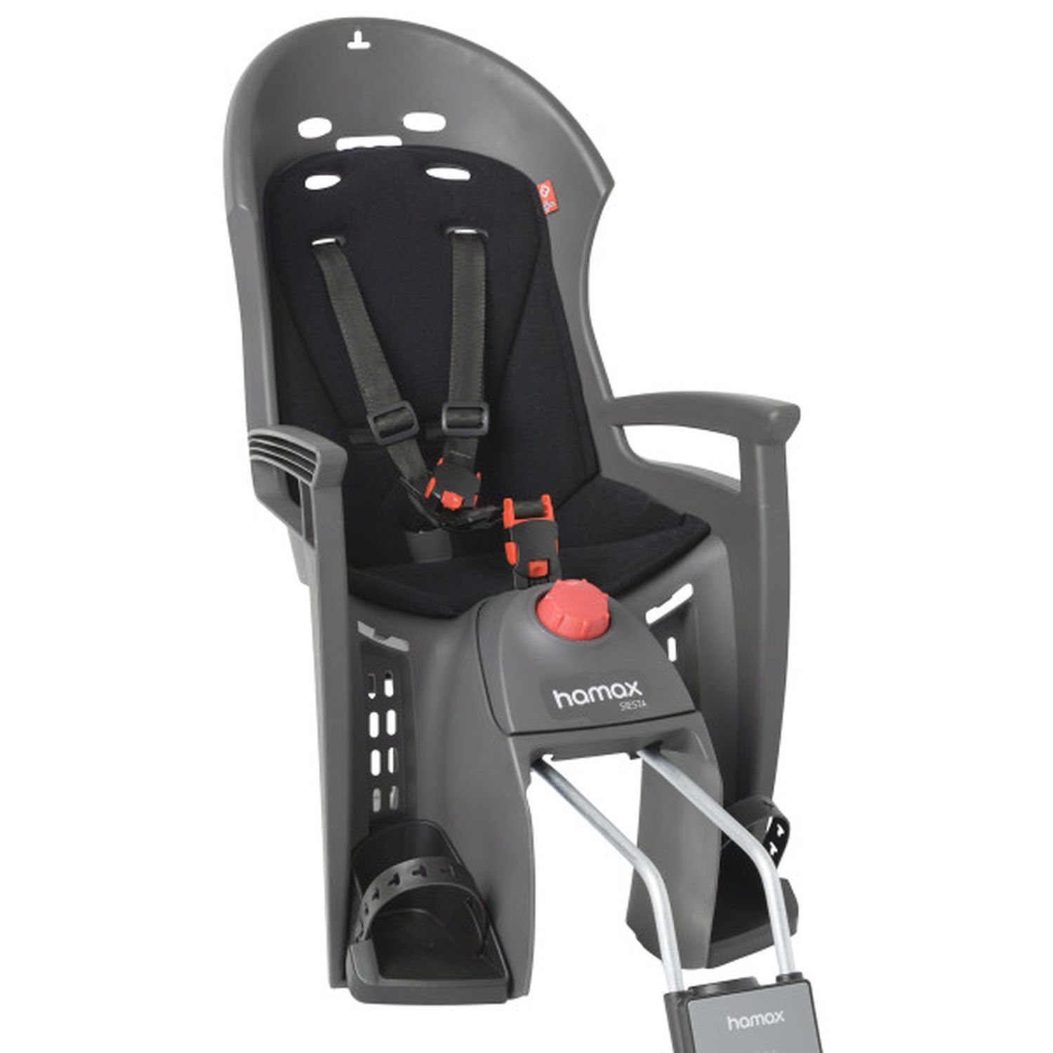 Наклон изменяется в положение сон на 20Эргономичный дизайн с дополнительным местом для шлема.Может крепиться на велосипед, даже если на нём нет багажника.Максимальная нагрузка - 22 кг. Перевозка детей младше 9 месяцев не рекомендуется.Крепёжный кронштейн с замком