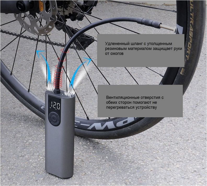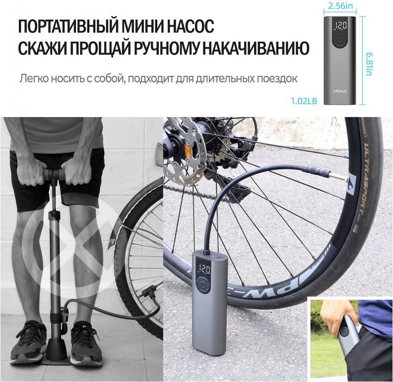 Портативный насос с аккумулятором Cycplus A8 Air Pump, 5В, 2600мАч, 150PSI
