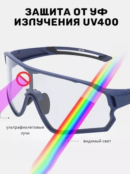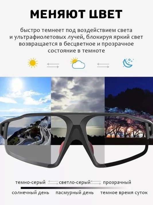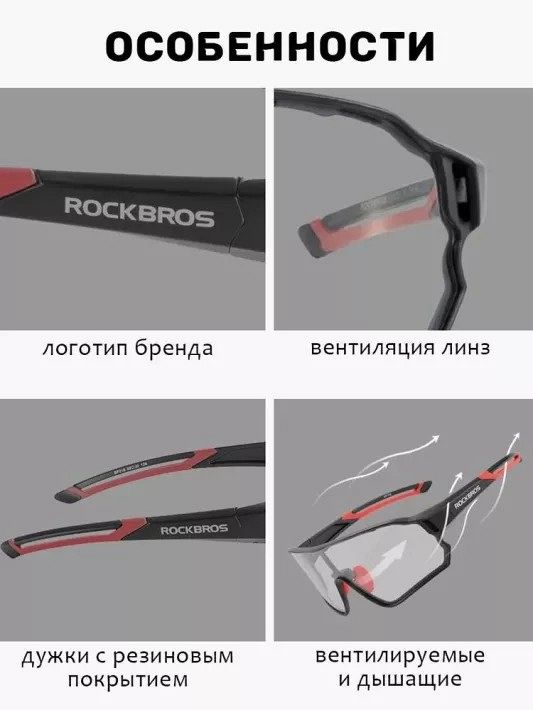 Очки велосипедные Rockbros, оправа черная, линзы с поляризацией фотохромные, RB_10139, черный