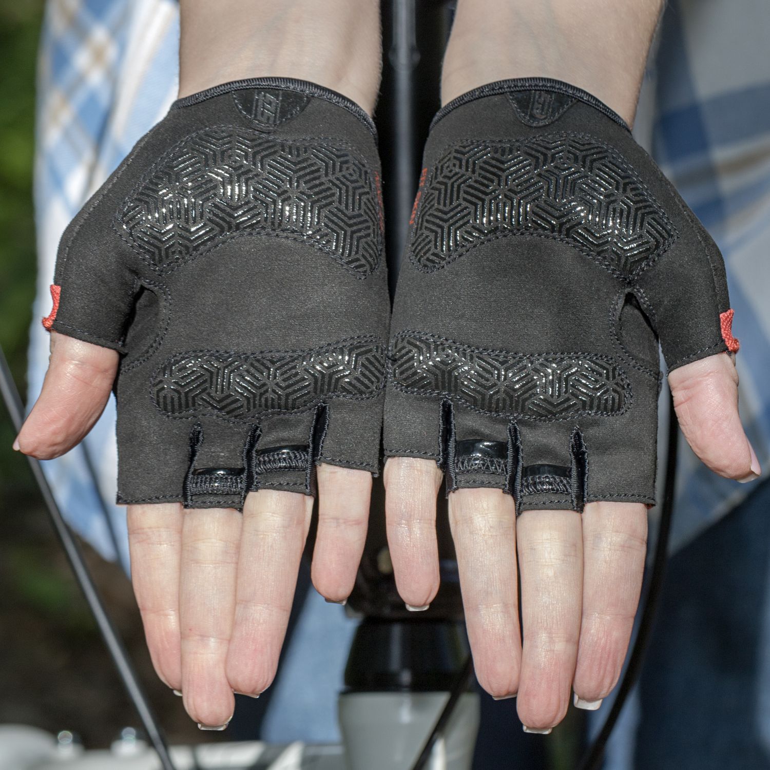 – Материал ладони: замша, обеспечивающая отличное сцепление с рулем и долговечность.