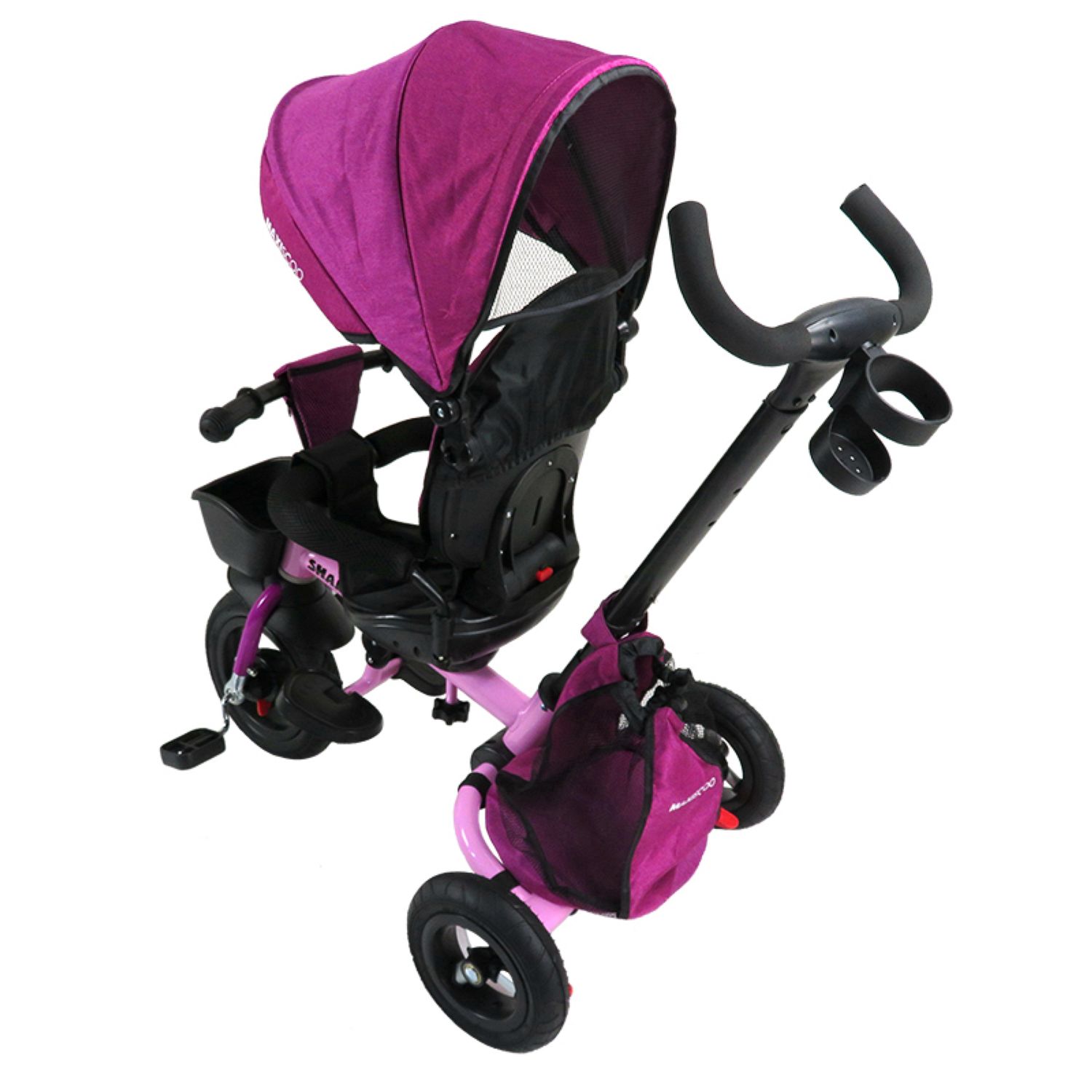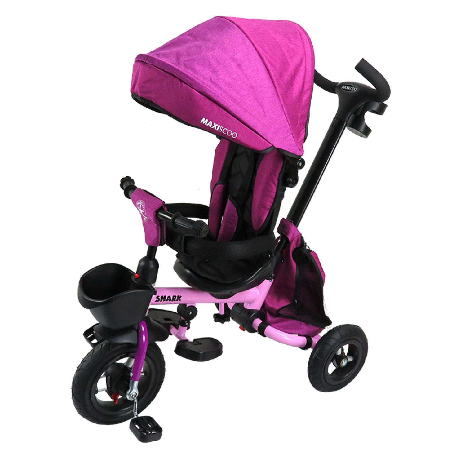 Велосипед трехколесный Maxiscoo Shark (2023) с мягким сиденьем и капюшоном, розовый