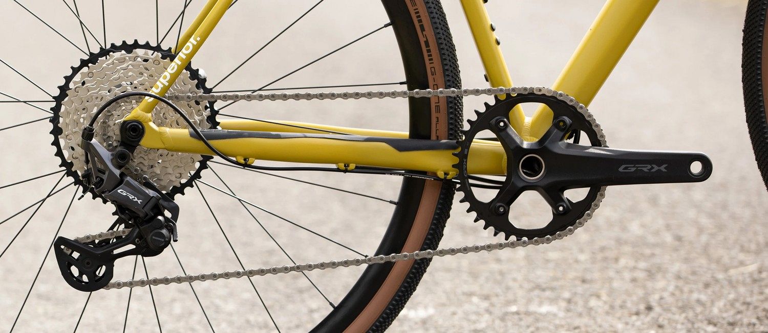 – Трансмиссия Shimano GRX 1x12 разработана специально для гравийных велосипедов, отличается высокой точностью переключения и надёжностью. Один передний переключатель упрощает управление передачами, а широкий диапазон позволяет уверенно двигаться как на скоростных участках, так и на подъёмах.