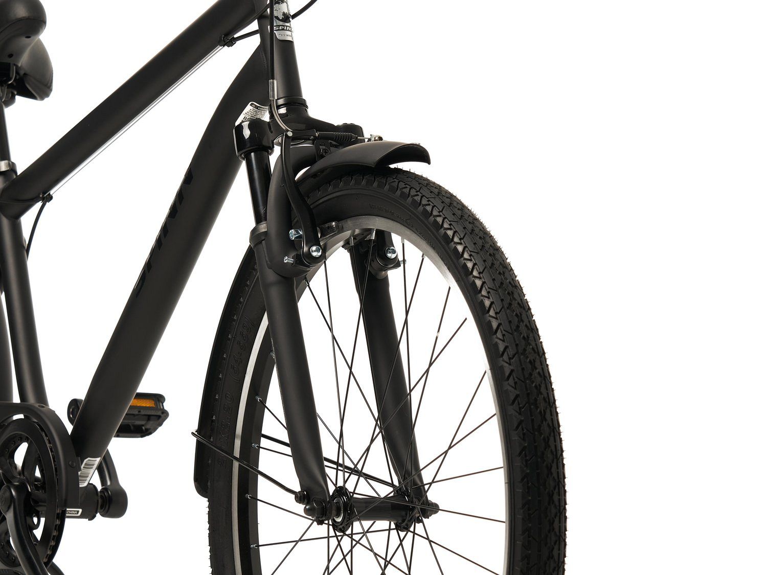 Цепь велосипеда защищена кожухом, что предотвращает загрязнение одежды. Надежные ободные тормоза с регулируемыми ручками под четыре пальца и прочные 26-дюймовые колеса с покрышками Spinn Road 26x2.2" создают безопасность и стабильность на любой дороге.