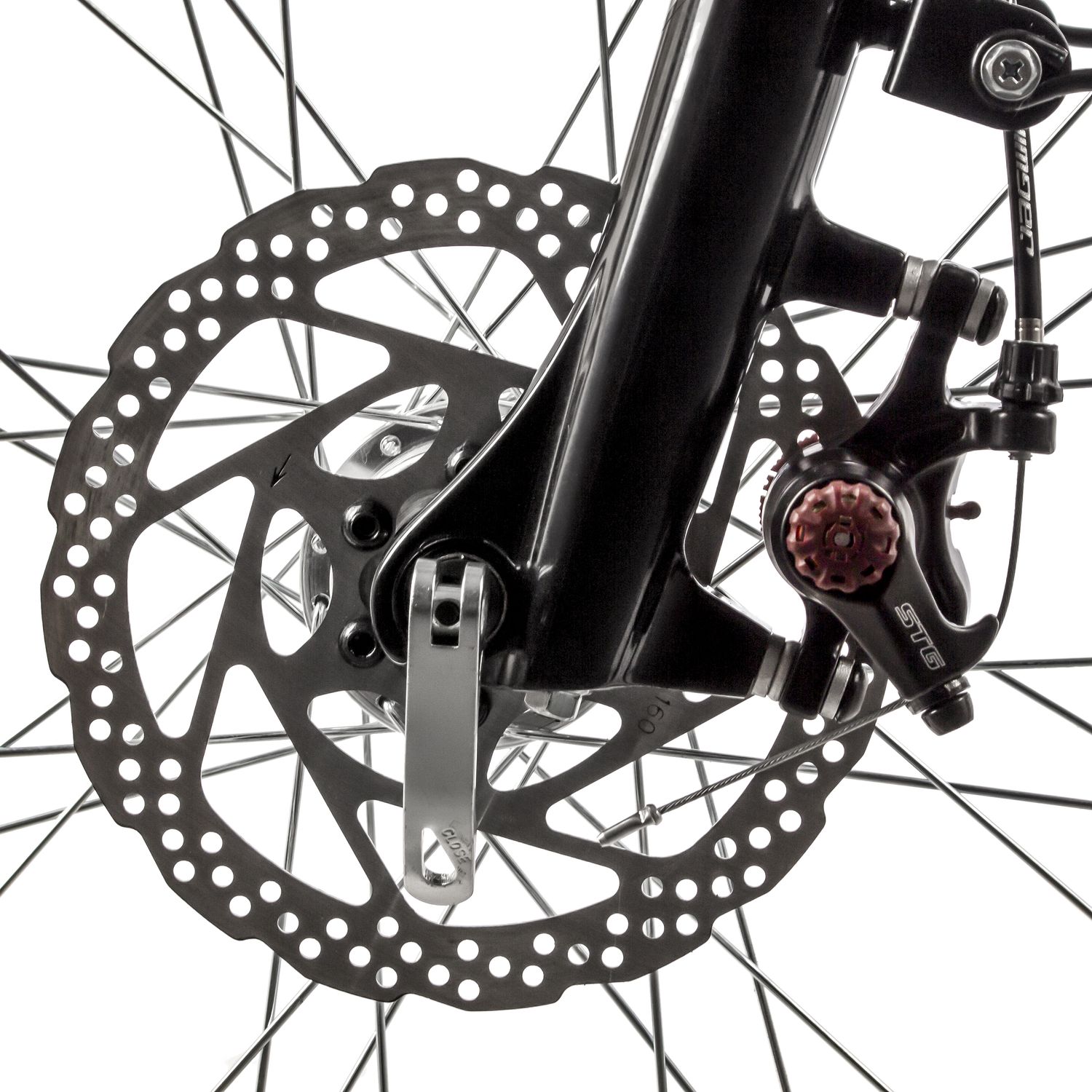 Модель тормозов, установленных на велосипеде. Тормоза различаются классом оборудования, эффективностью работы на больших скоростях и при высоких нагрузках, материалами, весом.