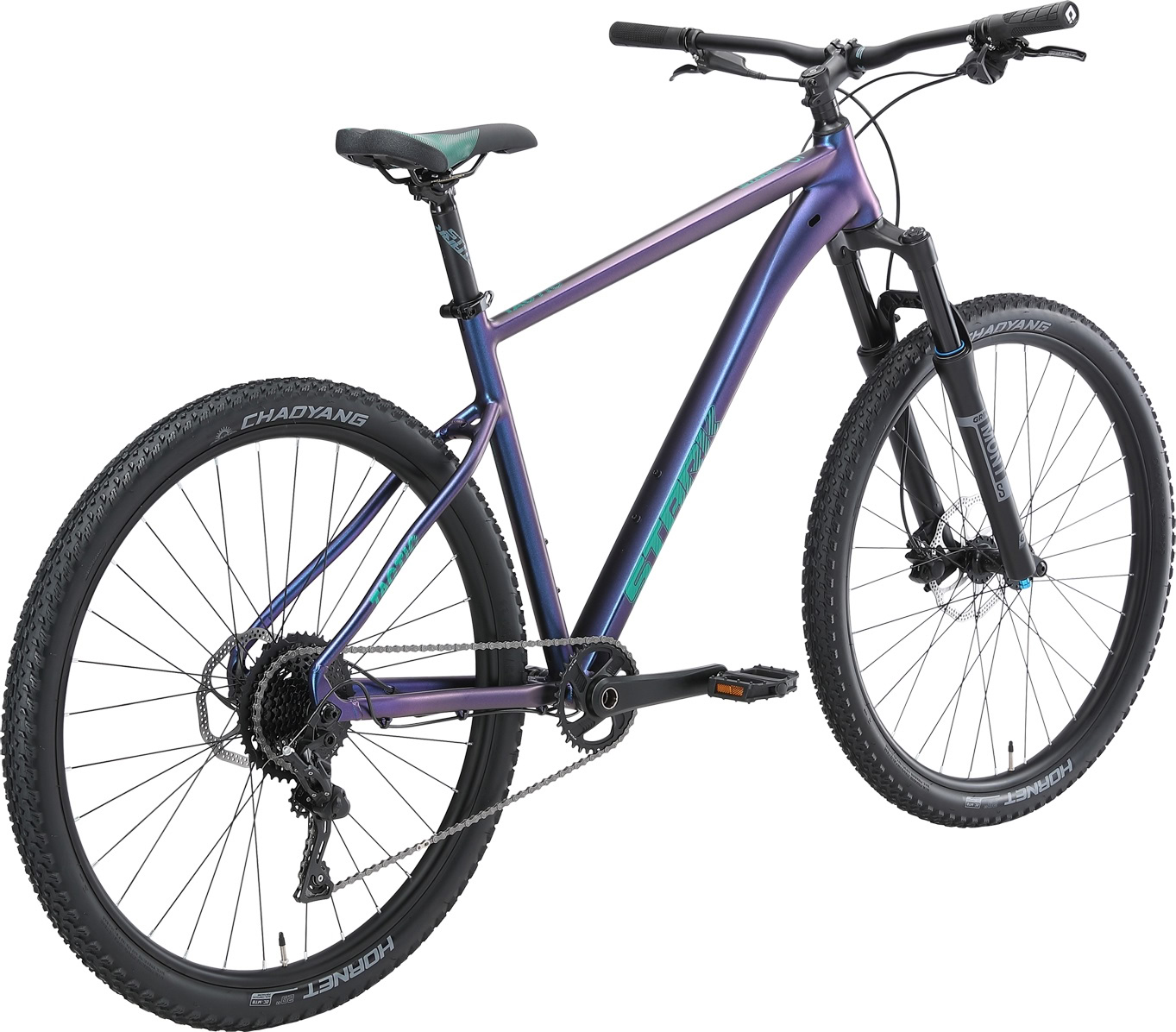 Двойные обода Citron DP-27 и покрышки Chaoyang H5161 шириной 2,1 дюйма дают отличное сцепление и стабильность на любых покрытиях, будь то грязь, камни или корни деревьев. Дисковые гидравлические тормоза Tektro HD-M275 с роторами 180/160 мм гарантируют мощное и надежное торможение, что особенно важно на высоких скоростях и в сложных условиях.