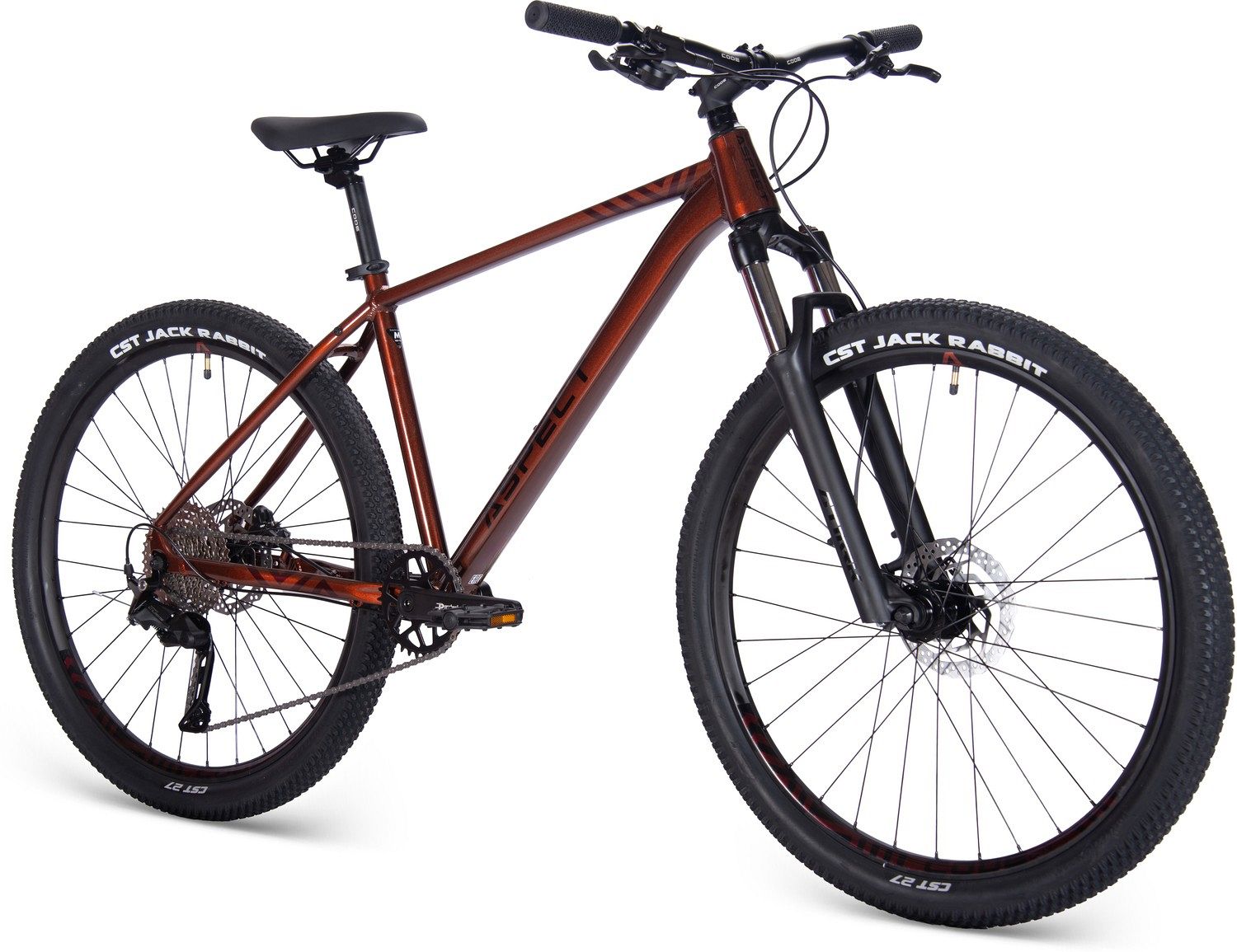 Aspect Nickel Elite 27.5 предлагает стабильное управление благодаря оптимальному углу наклона рулевого стакана и правильно подобранной длине перьев. Это делает велосипед идеальным для длительных поездок, позволяя наслаждаться каждым моментом на маршруте. Пружинно-масляная вилка GTMRK 362MLO с ходом 100 мм смягчает неровности дороги, создавая плавность хода и уверенность на любых покрытиях.