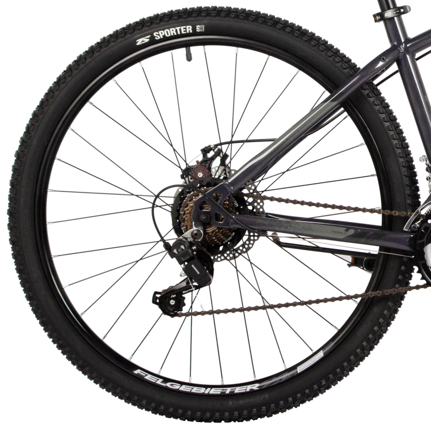 Дисковые механические тормоза STG с роторами 160 мм производят уверенную остановку в любых условиях, что особенно важно для безопасности при быстром движении. Втулки с дисковыми стальными элементами и QR (эксцентрик) делают процесс замены колёс быстрым и удобным. Обода Felgebeiter VB-18 добавляют дополнительную прочность и устойчивость к нагрузкам.