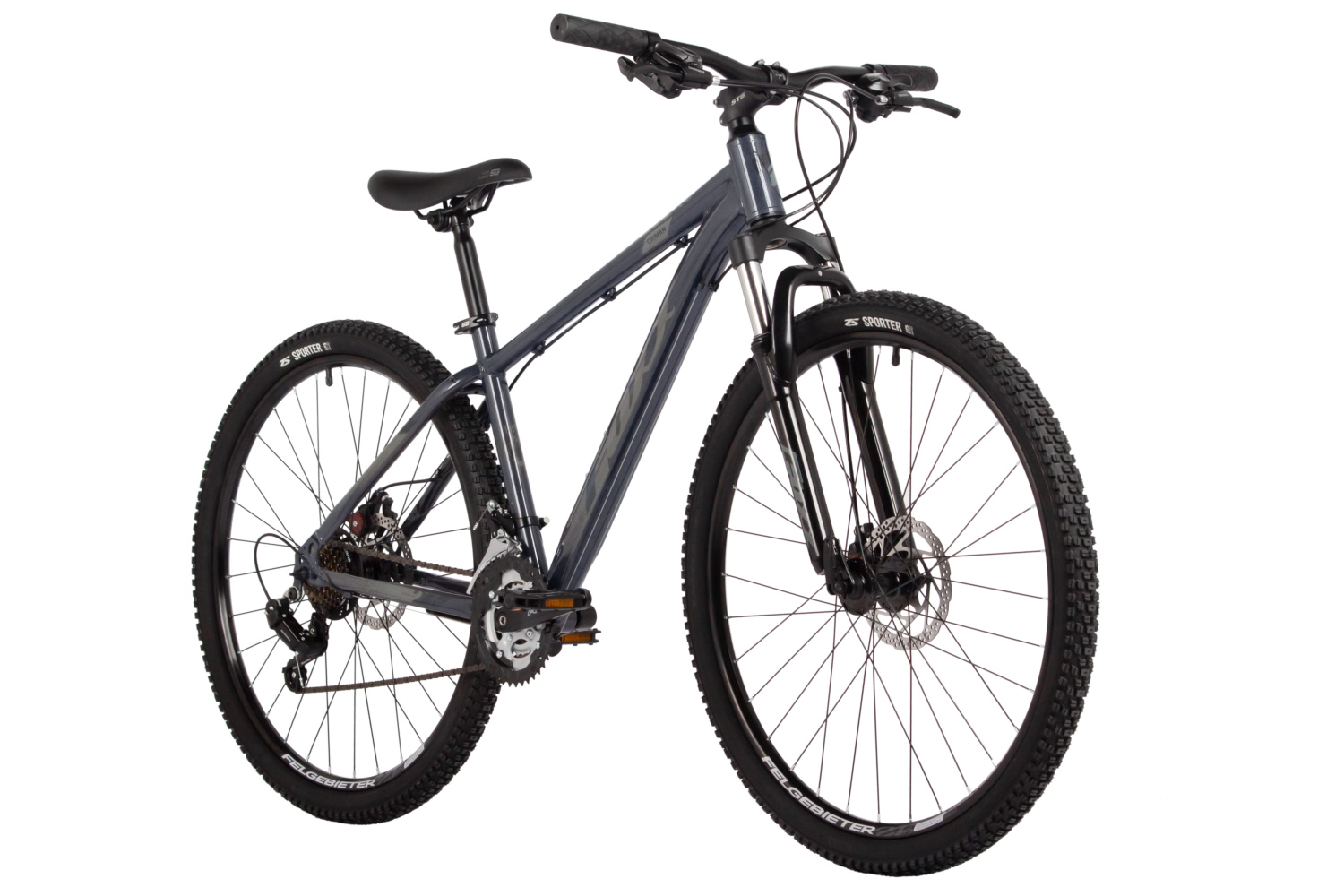 – Пружинная вилка Foxxshox с ходом 50 мм для комфорта на неровностях.