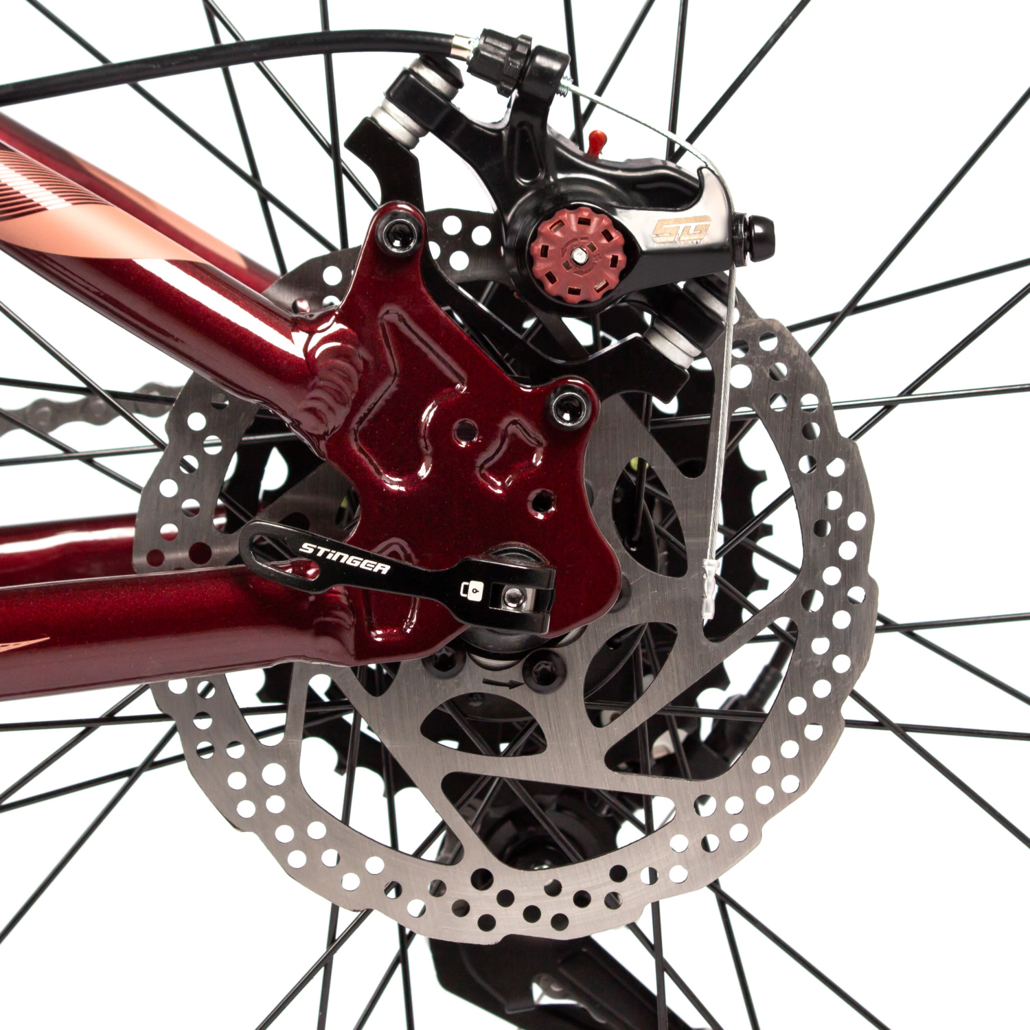 – Пружинная вилка STG Spice с ходом 110 мм для комфортного катания по неровным поверхностям.
