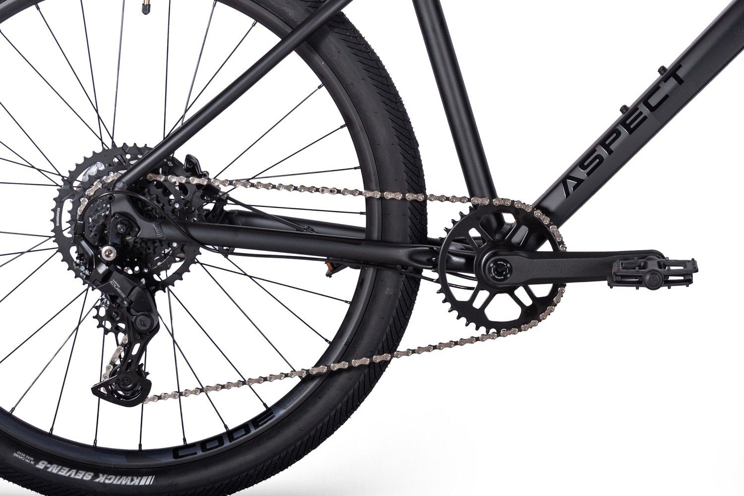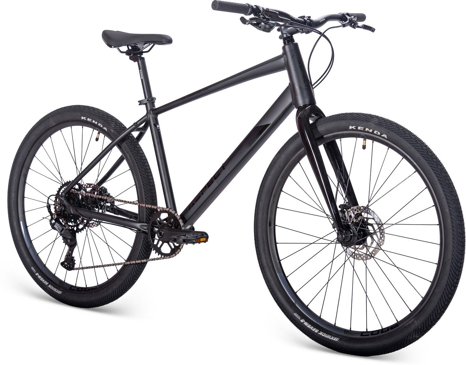 Aspect Glider оснащён прочной алюминиевой рамой ALU 6061 с гидроформированными и двойными баттированными трубами, что придаёт велосипеду современный и стильный вид. Внутренняя прокладка кабелей и коническая рулевая труба добавляют аккуратности и аэродинамики. Жёсткая вилка Tapered Alloy Fork 9*100mm обеспечивает отличную управляемость и стабильность на городских дорогах.