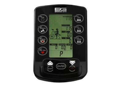 Тренировочный компьютер Bronze Gym A1000M PRO TURBO оборудован многофункциональным LCD-дисплеем. На экране отображаются следующие данные: время, скорость, дистанция, расход калорий, пульс, темп, Ватт, интервал. В число самих программ входят 3 режима интервальных тренировок. Достичь конкретные спортивные задачи помогут целевые тренировки (время, дистанция, калории). Помимо предустановленных программ, можно воспользоваться программой быстрого старта с регулировкой всех показателей. Для тренировок с контролем пульса подойдет пульсозависимая программы. Для точного определения пульса и просто комфортной тренировки в компьютер встроен беспроводной приемник (нагрудный ремень-передатчик приобретается отдельно). Для бутылочки с водой предусмотрен специальный держатель.