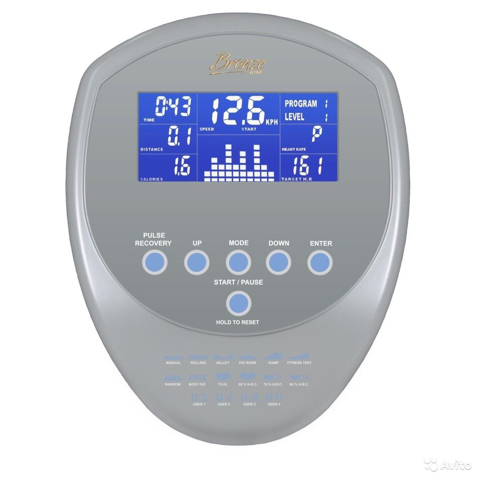 Bronze Gym U801 LC - полупрофессиональный вертикальный велотренажер, ориентированный как на клубы со сравнительно невысокой проходимостью, так и на тех домашних пользователей, кто требует от тренировки максимальной эффективности. Электромагнитная приводная система высшего класса EMS, утяжеленный сбалансированный маховик весом 11 кг. и дисковый трехкомпонентный педальный узел обеспечивают великолепный мягкий ход. Большое и мягкое сидение, регулируемое по вертикали в 16-ти положениях, отвечает за удобство посадочного положения. Система нагружения поделена на 16 уровней с широким диапазоном от 10 до 680 Ватт. Навигационная часть представлена многофункциональной голубой LCD консолью диагональю 14 см. с профилем тренировки. В число программ входят 4 предустановленных тренировочных профиля, случайная тренировка, фитнес-тест, 4 пользовательских, 4 пульсозависимых режима 607585THR, несколько режимов жироанализатора Body Fat телосложение BodyType, индекс массы тела BMI, индекс метаболизма BMR. Максимальный вес пользователя - 160 кг.Назначение полупрофессиональноеПосадка вертикальнаяРама особопрочная с двухслойной покраской металлик и лакировкойСистема нагружения электромагн. бесконтактная EMSКол-во уровней нагрузки 16 10-680 ВаттМаховик 11 кг.Педальный узел дисковый трехкомпонентныйСиденье большое эргономичное повышенной комфортностиРегулировка положения сидения по вертикали 16 положенийРегулировка положения руля нетИзмерение пульса сенсорные датчикиКонсоль 5.5 дюймовый 14 см. цветной многофункциональный LCD дисплейПоказания консоли профиль, время, дистанция, калории, обороты в мин., пульс, уровни, Ватты, фитнес-тест Recovery, жироанализатор Body Fat, индекс массы тела BMI, индекс метаболизма BMRКол-во программ 16 в т.ч. пульсозависимыеСпецификации программ ручной режим, долина, склон, сжигание жира, качели, фитнес-тест, случайная, жироанализатор Body Type, BMI, BMR, 4 пользовательские, 4 пульсозависимыеСтатистика тренировок нетМультимедиа нетРазъемы нетИнтернет нетЯзыки интерфейса английскийВентилятор нетСкладывание нетТранспортировочные ролики естьРазмер в рабочем состоянии ДШВ 11364141 см.Вес нетто 45 кг.Макс. вес пользователя 160 кг.Питание сеть 220 ВольтГарантия 1 годПроизводитель Neotren GmbH, ГерманияСтрана изготовления Тайвань