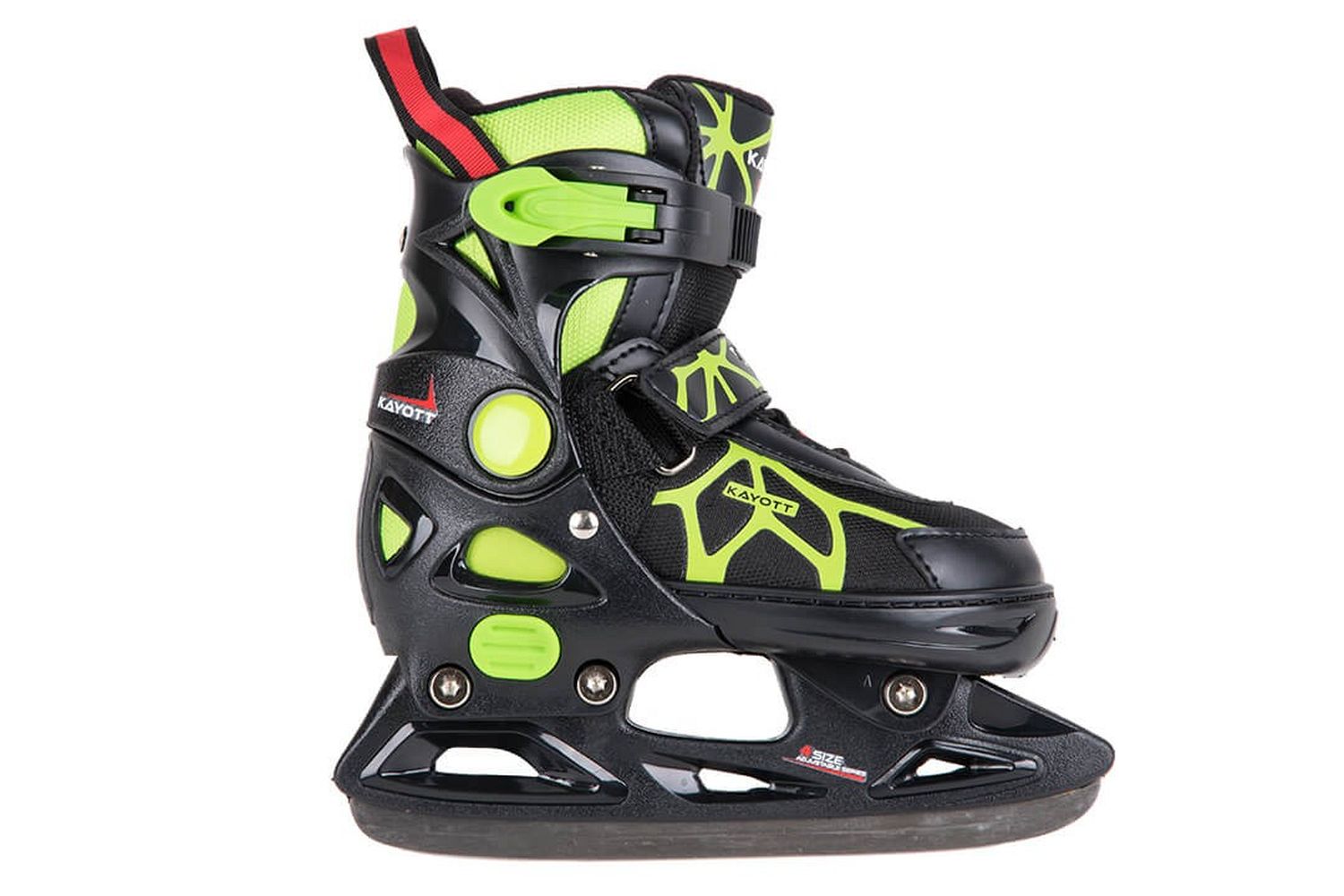 Красивые и практичные детские коньки с системой регулировки размера. Ботинок специальной конструкции позволяет увеличить размер в пределах 2-2,5 см, что позволяет адаптировать его к постоянно растущей ноге ребенка и комфортно кататься не один сезон.