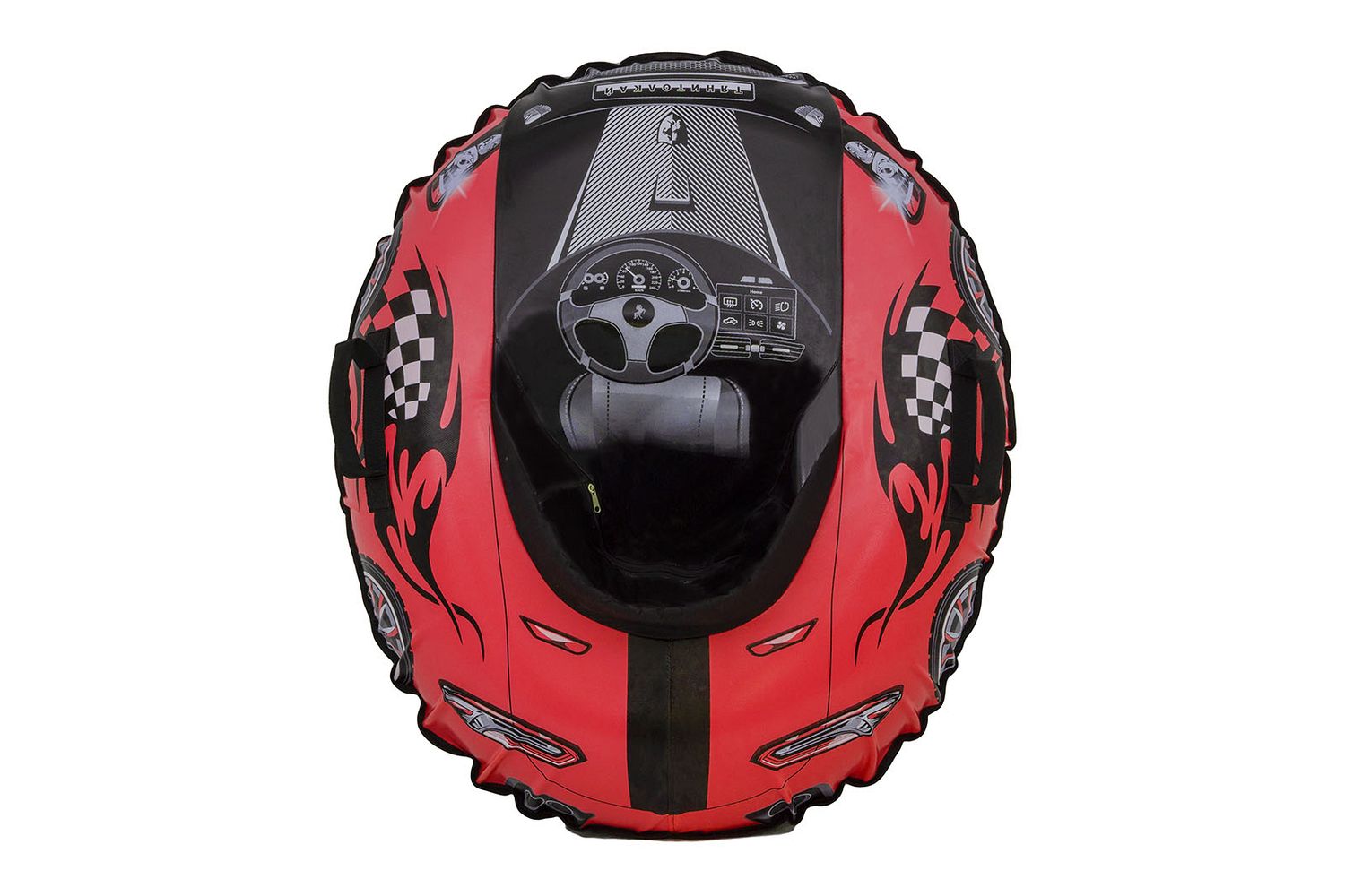 Овальные тюбинги с нанесением принта с изображением машинки изготовлен из прочного тента, который устойчив к морозам до 25 градусов, глянцевая поверхность материала позволяет тюбингу-ватрушке отлично скользить по снежной поверхности.
